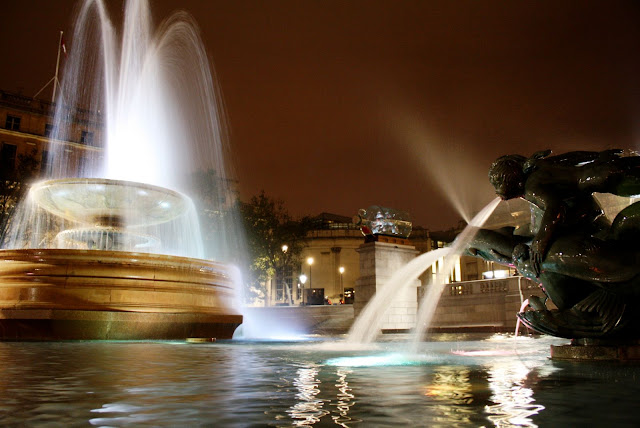 Sitting at the base of Nelson's Column the impressive columns of the National Gallery are framed by the two fountains and the square is completed by the Gallery itself. in the dark the lights give the square and unreal quality. add it that the sound of the fountains mixed with the music of a street musician playing his saxophone and i was gone. i kept having to tell myself "yes, this is real, you are here, this is your real life right now"